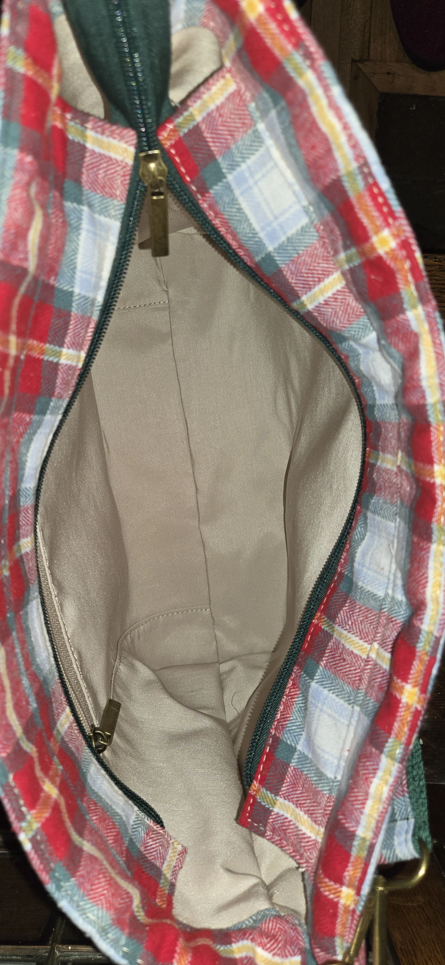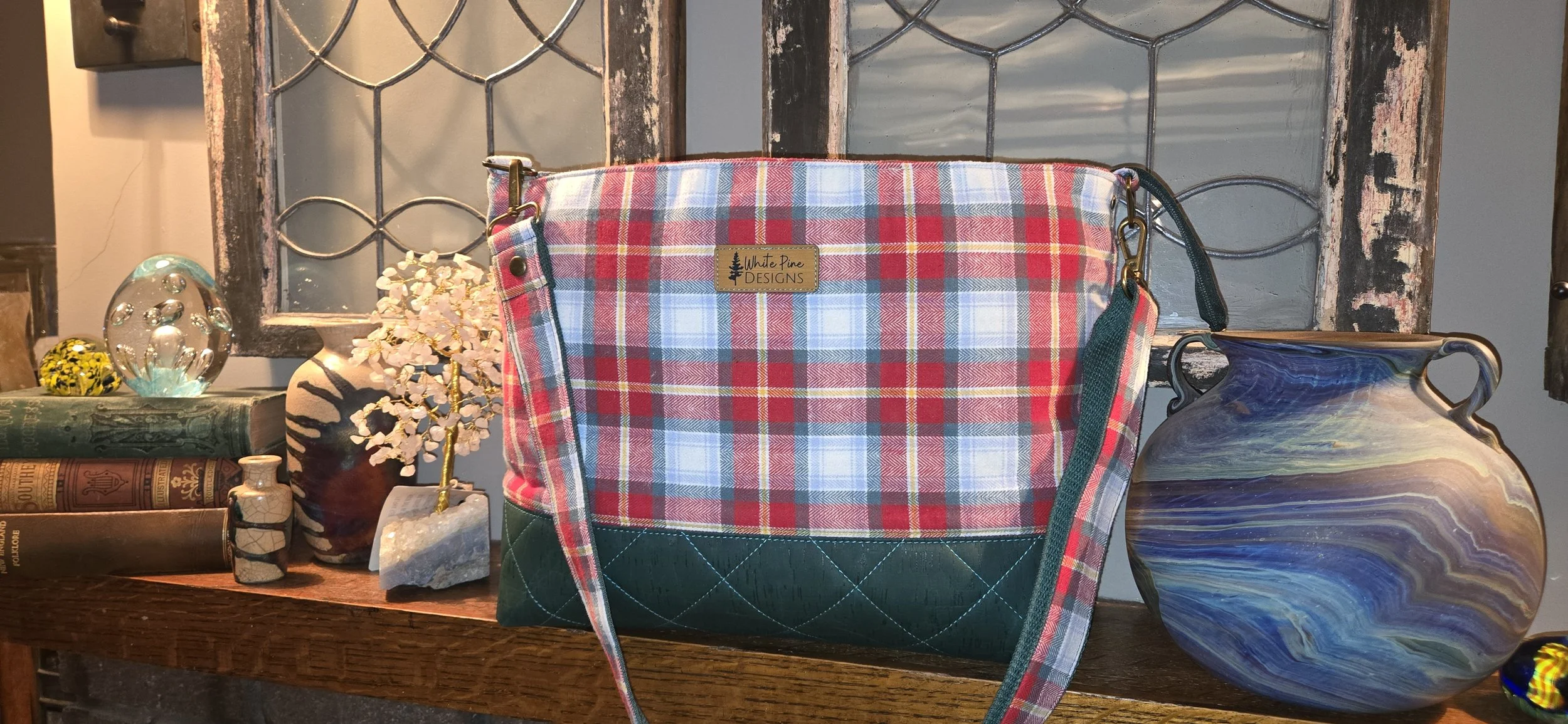 Made from a flannel plaid and cork, this mid-size tote will carry all your necessities, plus a pint of Guiness or two!